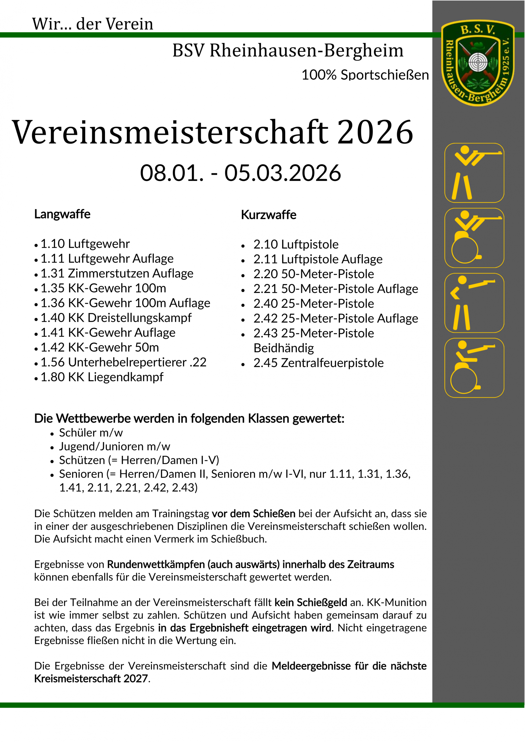 Unsere Sportler starten bei den Meisterschaft des RSB und DSB in Kreis-, Bezirks- und Landesmeisterschaften bis hin zur Deutschen Meisterschaft. In Kreis- und Bezirksliga sind wir mit sieben Mannschaften vertreten.